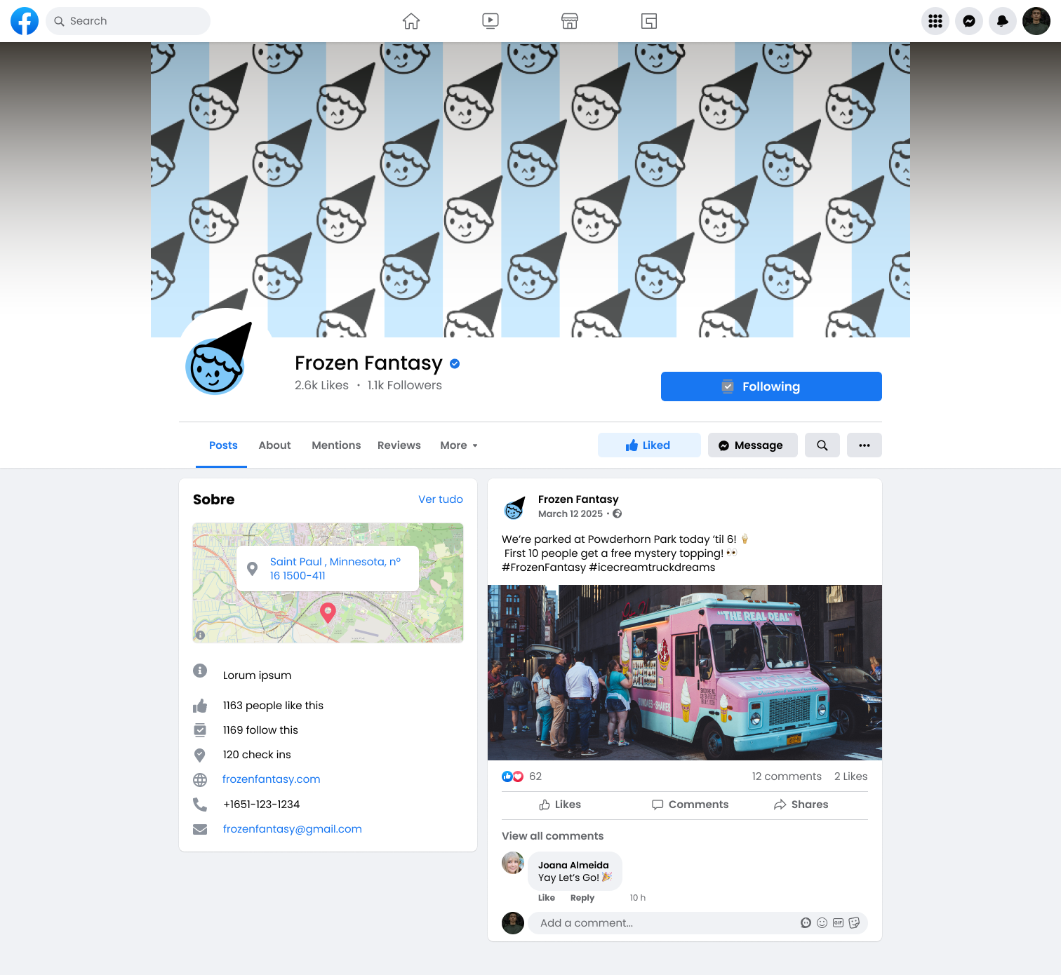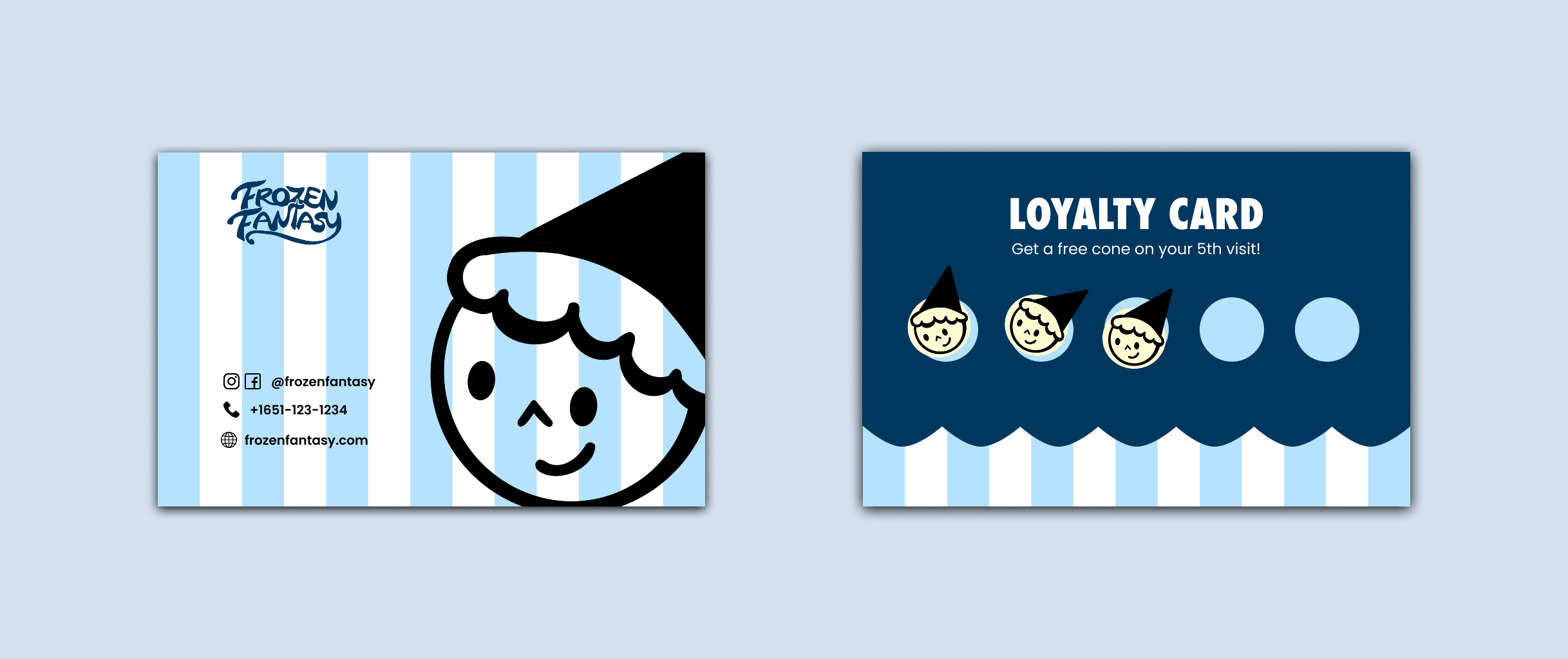 I created a complete brand system for Frozen Fantasy, an ice cream truck company. The project includes logo design, brand personality, color palette, food truck graphics, loyalty cards, and a website.