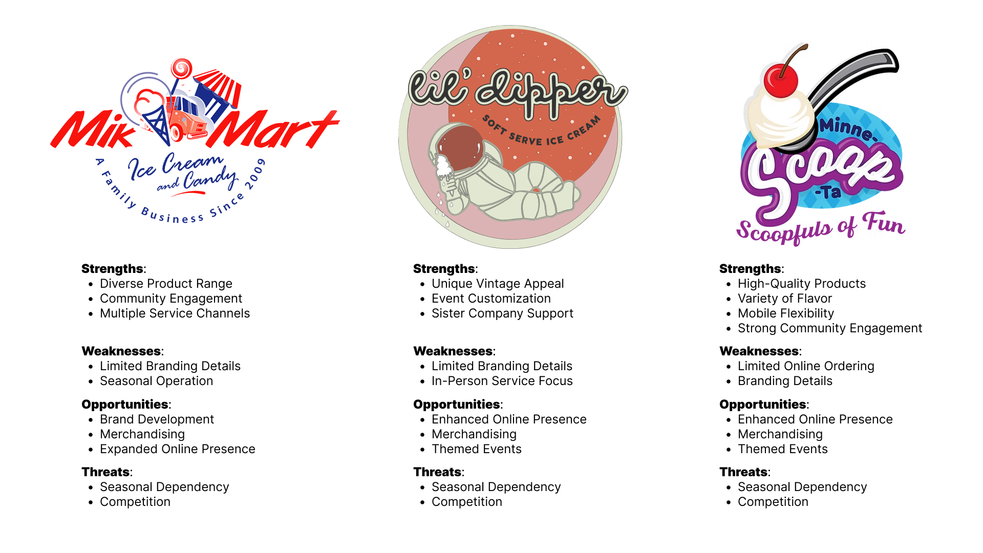 The first research step was a market and competitive analysis which involved examining local ice cream truck companies within Minnesota in order to find visual patterns in the brands, lost opportunities, and trends in the ice cream business. This research is crucial to finding out customer needs and understanding business needs as well.